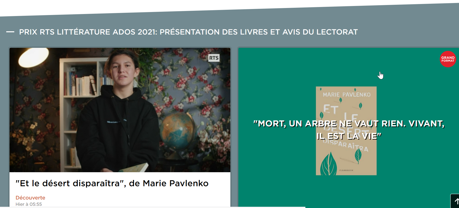 Les avis sur « Et le désert disparaîtra », « Deux fleurs en hiver » et « Ce qui fait battre nos cœurs » sont disponibles sur : www.rts.ch/decouverte/monde-et-societe/culture-et-sport/prix-rts-litterature-ados