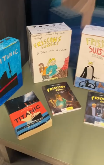 Chaque élève d’une classe de 8H a choisi un ouvrage, l’a lu et a réalisé à partir d’une boîte de céréales la réplique du livre. Il en a fait le résumé, a indiqué son avis et a dû concevoir un jeu en lien avec l’histoire.