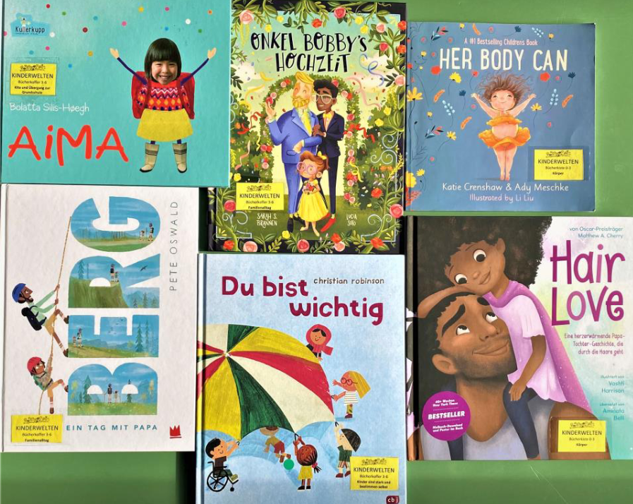 Die Fachstelle « Kinderwelten » für eine vorurteilsbewusste Bildung und Erziehung gibt regelmässig Empfehlungen für Kinderbücher der Altersstufen unter 3, von 3 bis 6 Jahren und von 6 bis 9 Jahren heraus. Die Listen (als Download im pdf erhältlich) werden einmal jährlich aktualisiert.