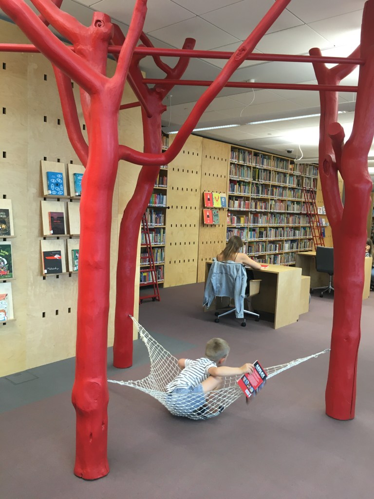Charmante décoration du secteur des enfants de la Bibliothèque nationale de Riga.