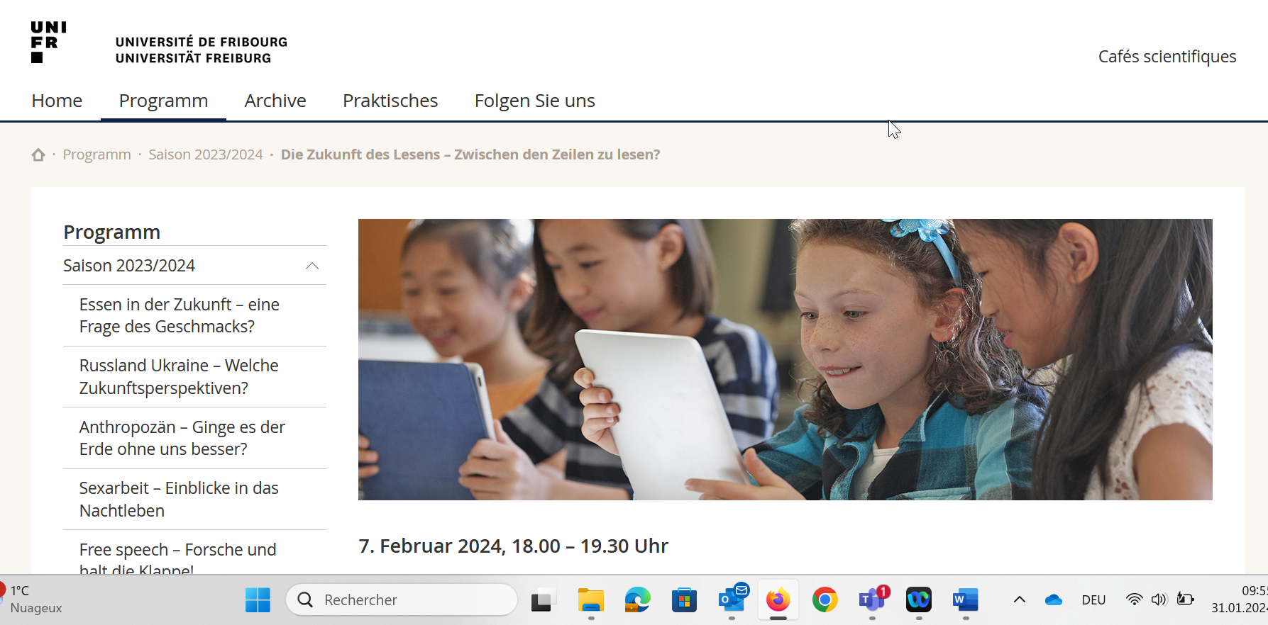 Die Universität Freiburg lädt ein zur Diskussion rund um die Zukunft des Lesens. Web, Apps und soziale Medien stellen uns überall eine unglaubliche Menge an Texten zur Verfügung und verändern unsere Gewohnheiten grundlegend. Diese Revolution hat Auswirkungen auf die Lesefertigkeiten und -techniken, wirft aber auch Fragen in Bezug auf Gesellschaft, Kultur und Bildungspolitik auf. Welche Rolle sollten die Bildungseinrichtungen spielen, um die Zukunft des Lesens aktiv zu gestalten?