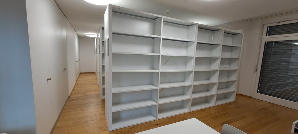 Im Kloster der Schwestern von Ingenbohl in Freiburg gibt es eine Bibliothek. Die Schwestern haben in den letzten Monaten viele Bücher ausgestaubt. Dadurch sind 24 weisse Regale mit einer Breite von 1m und einer Höhe von 2.25m (siehe beigefügte Fotos) frei geworden. Sie sind alle in sehr gutem Zustand.