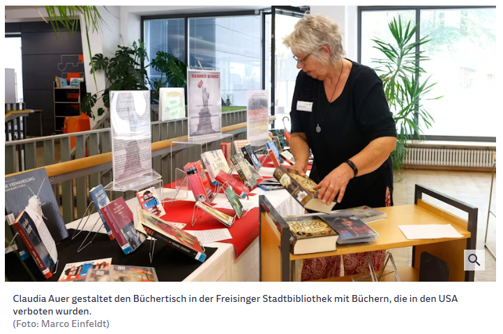«Die Freisinger Stadtbibliothek in Deutschland (Oberbayern) widmet einen Büchertisch jenen Lektüren, die in den USA auf Initiative konservativer Gruppen aus den Schulen entfernt wurden. Die Resonanz auf die Initiative ist gross.»