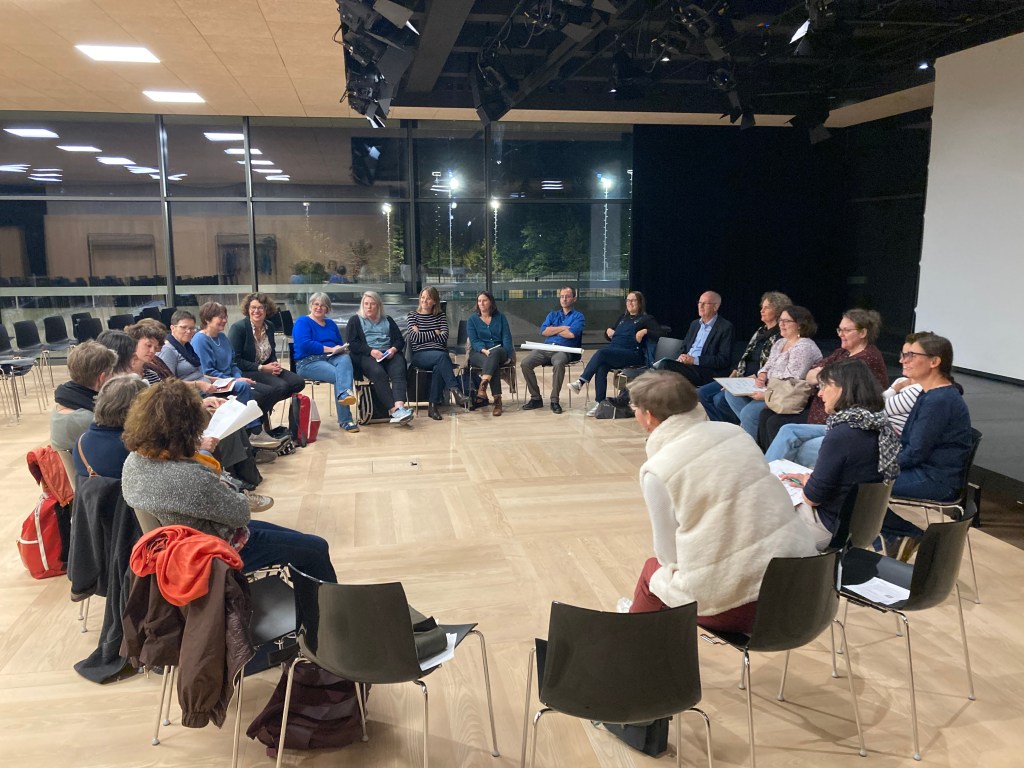 Après les discussions en groupes, les différents aspects de la coopération ont été rassemblés en séance plénière. / Nach den Diskussionen in Gruppen wurden die verschiedenen Aspekte der Zusammenarbeit im Plenum zusammengetragen.