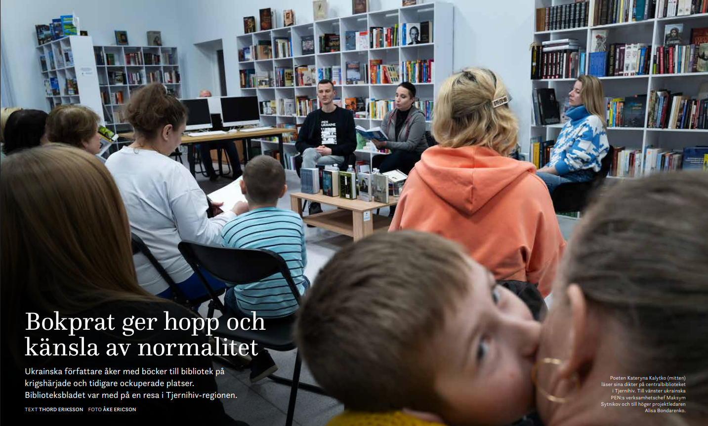 Une exposition à la bibliothèque Kornhaus de Berne présente jusqu’au 31 janvier 2026 des photos prises l’hiver dernier par le photographe suédois Ake Ericson. Elles montrent la destruction, mais aussi la volonté et le courage de la société civile de poursuivre les activités des bibliothèques.