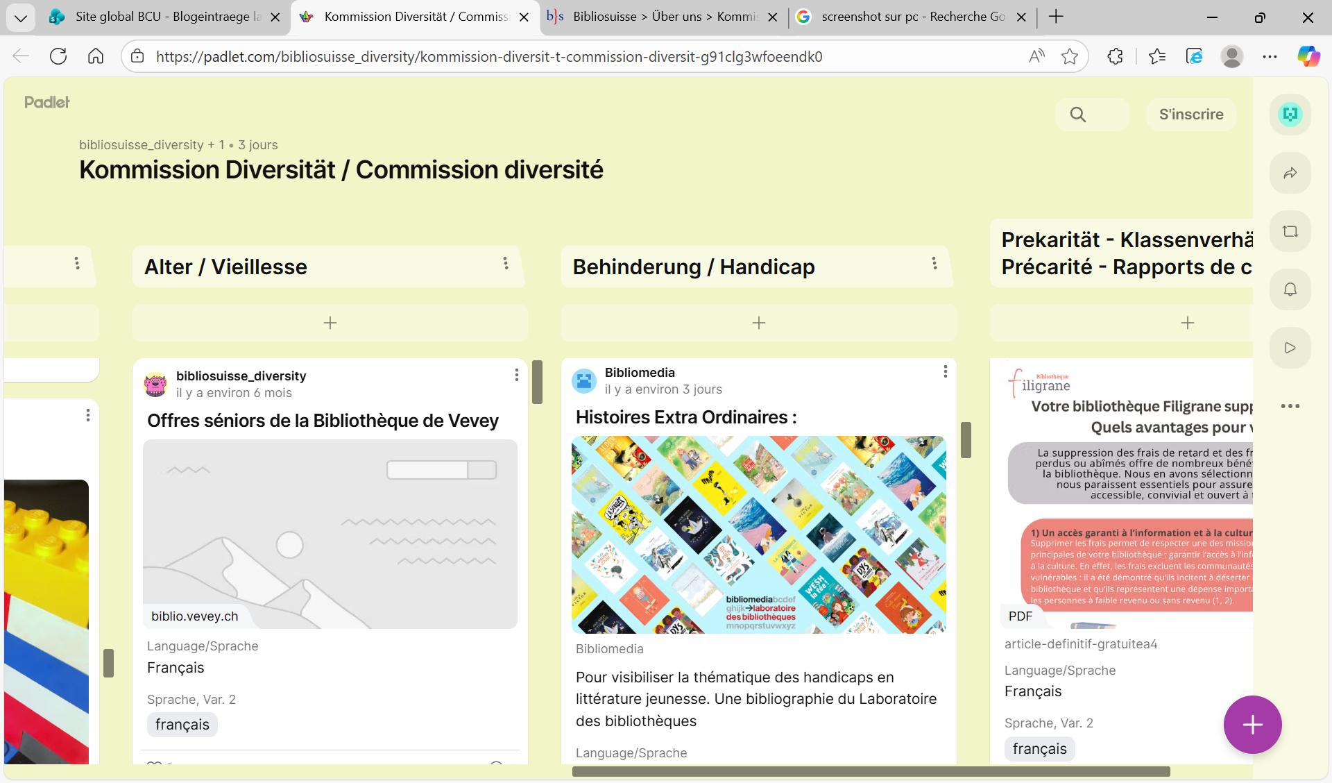 La Commission Diversité de Bibliosuisse propose un padlet qui contiennent de nombreuses ressources pour les bibliothèques :