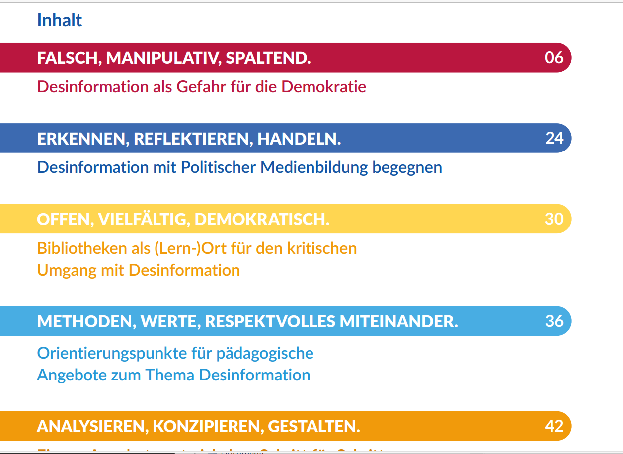 Die Broschüre will dabei unterstützen, die Themen Fake News und Desinformation für die bibliotheks- und medienpädagogische Arbeit zu erschliessen und entsprechende Angebote zur Demokratieförderung zu entwickeln.